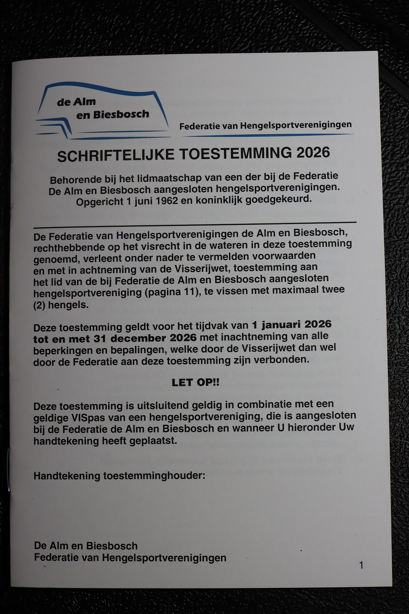 In de voorwaarden van Federatie de Alm en de Biesbosch is opgenomen dat je het Boekje ondertekend moet kunnen tonen bij controle.
