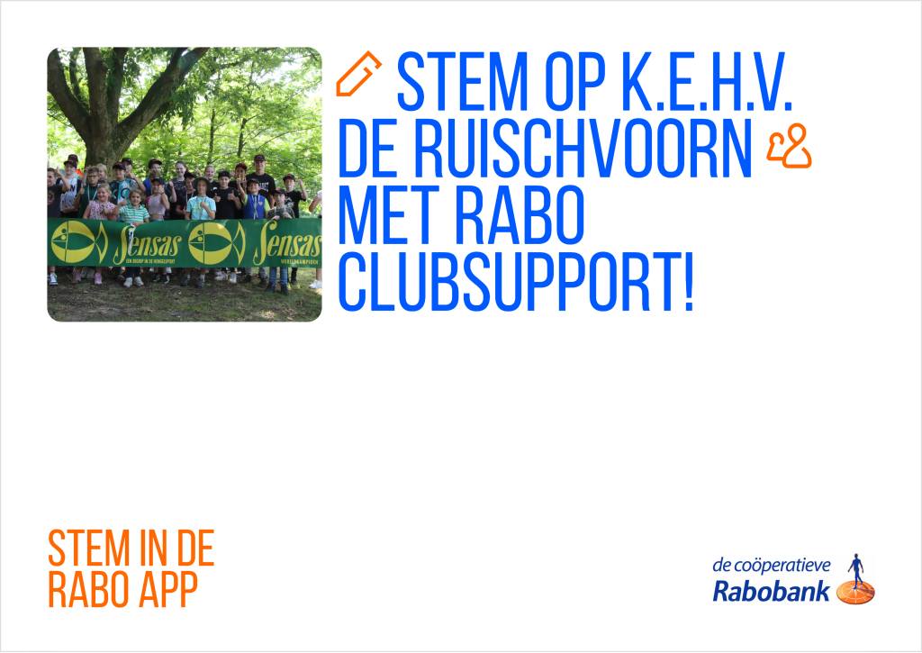 Ga naar https://www.rabobank.nl/leden/clubsupport log in en zoek eerst de regio Tilburg en omstreken en zoek daarna op De Ruischvoorn en breng je stem uit.