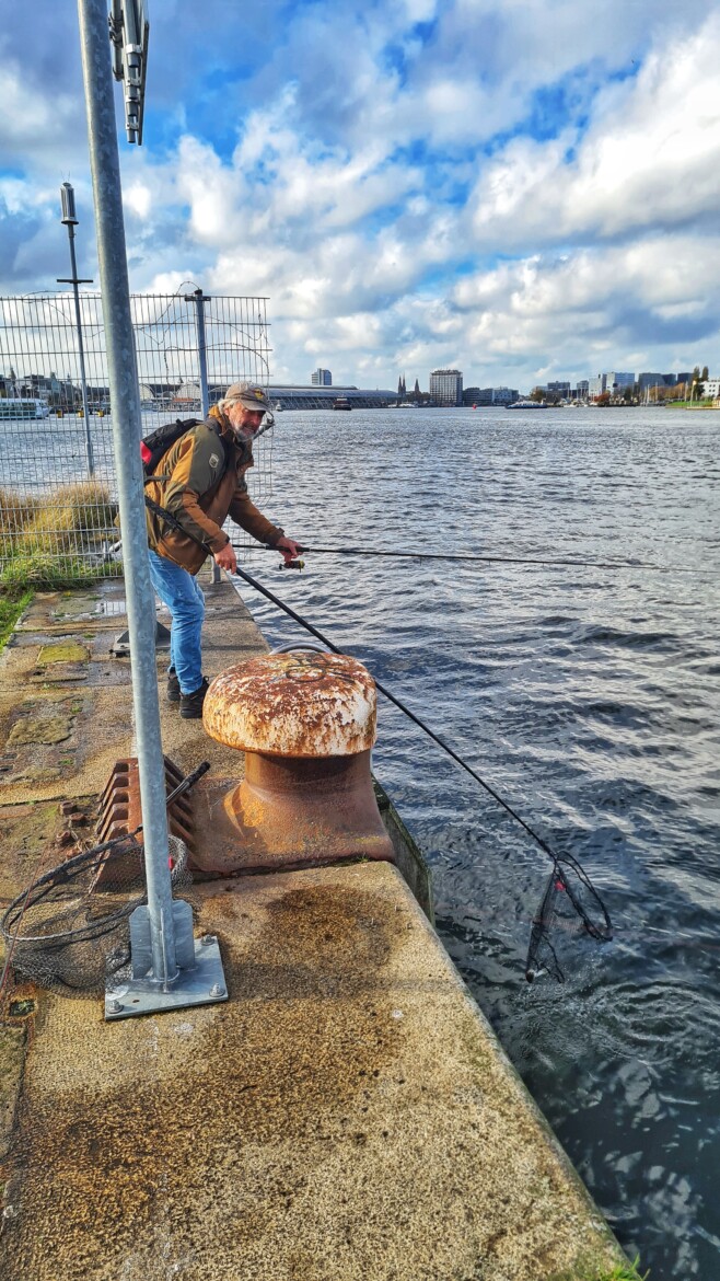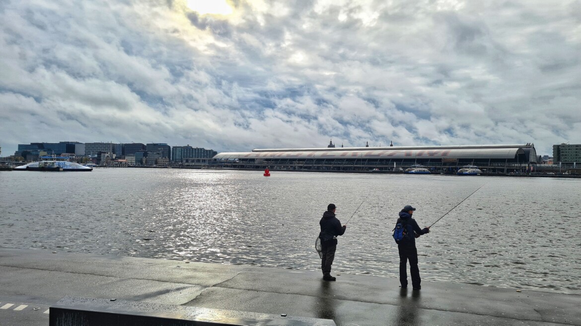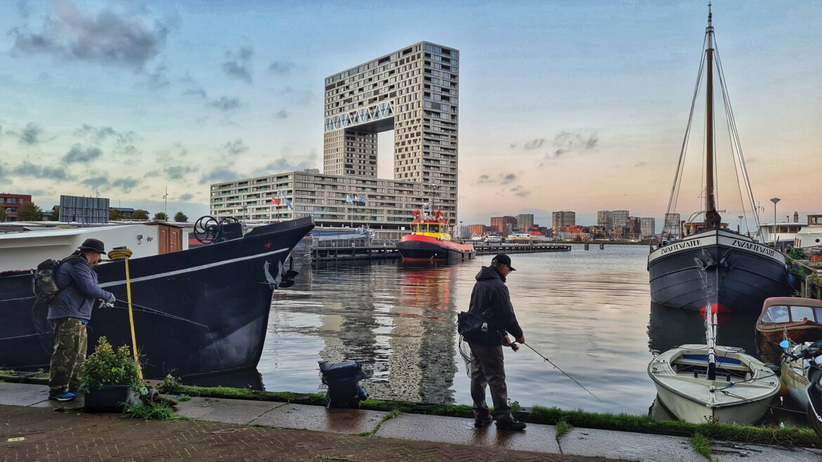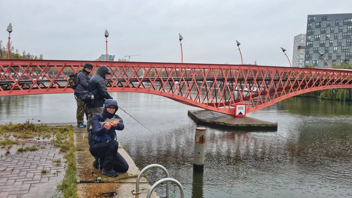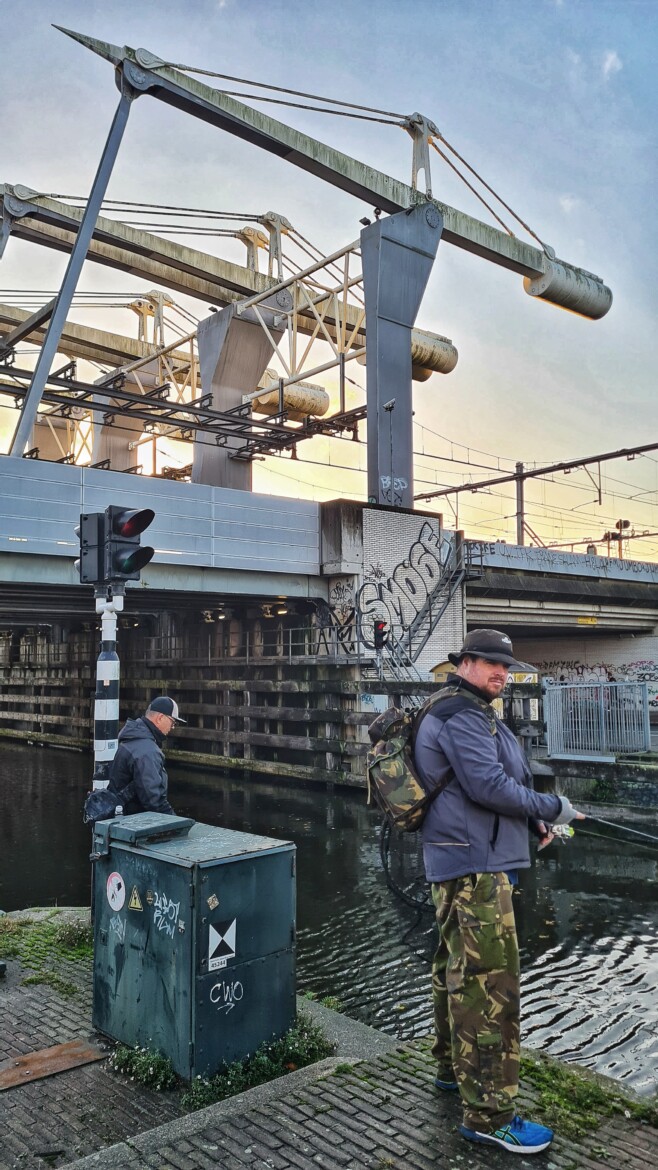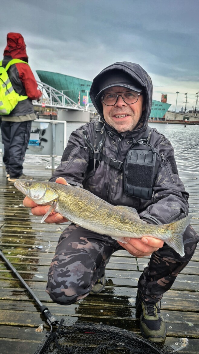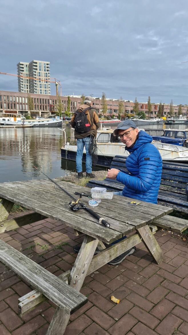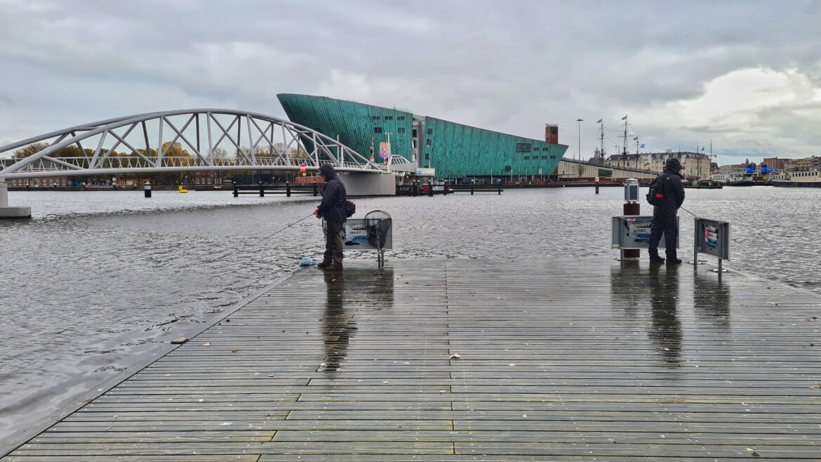 Ook de Entrepothaven en de wateren rond NEMO leverden actie op. De sfeer zat er meteen goed in: herfstweer, stadslicht, trams op de achtergrond en kromme hengels.