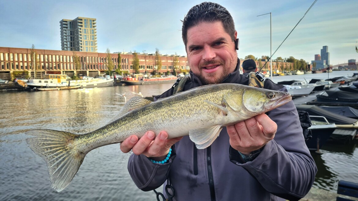 Op het IJ en nabij de Houthavens was het tijd voor grover werk. Hier zorgden pluggen en dieper gevist kunstaas voor meerdere vissen, tot grote tevredenheid van de groep.